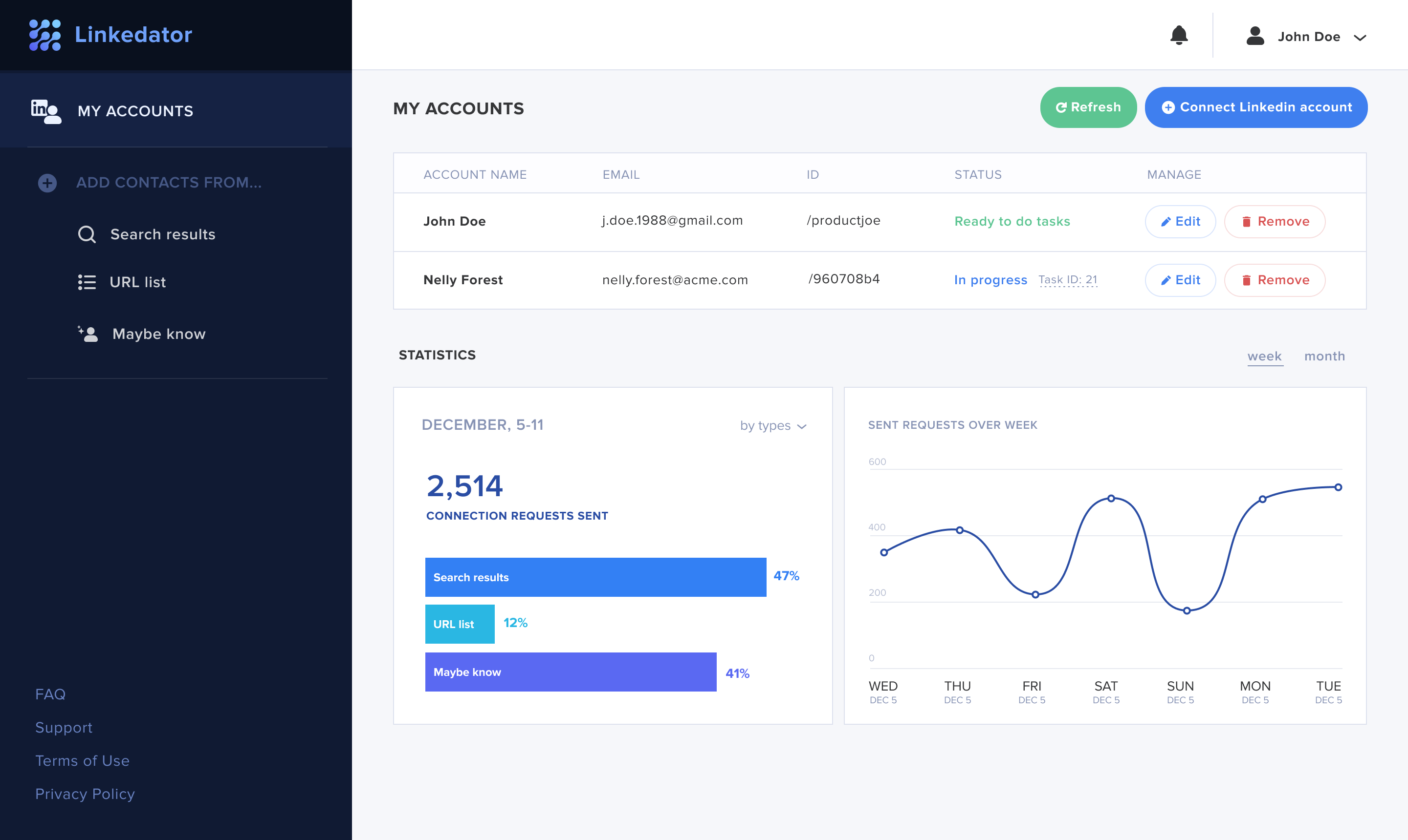 Linkedator is a LinkedIn automation tool that rapidly expands professional networks, allowing individuals to effortlessly establish valuable connections in less time than manual methods.It was a project-based job that I took on to gain more experience in designing web applications, since all of my previous commercial experiences had been focused on mobile interfaces.